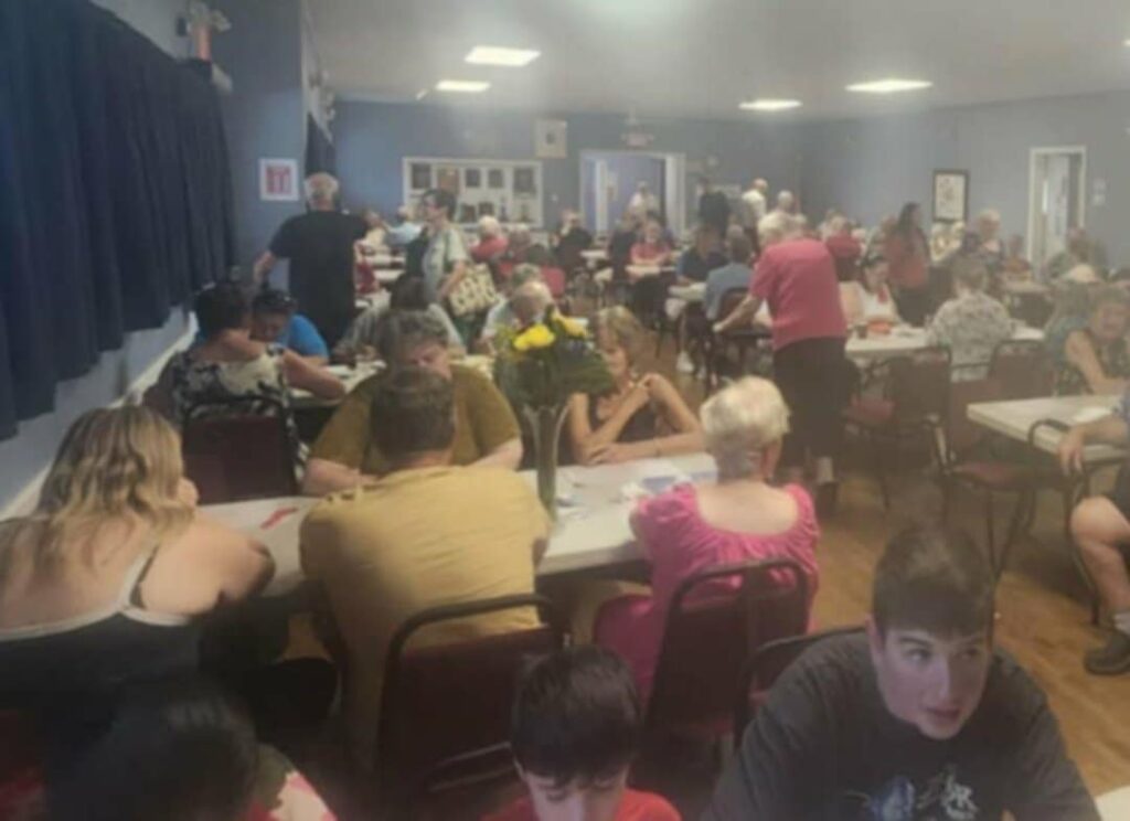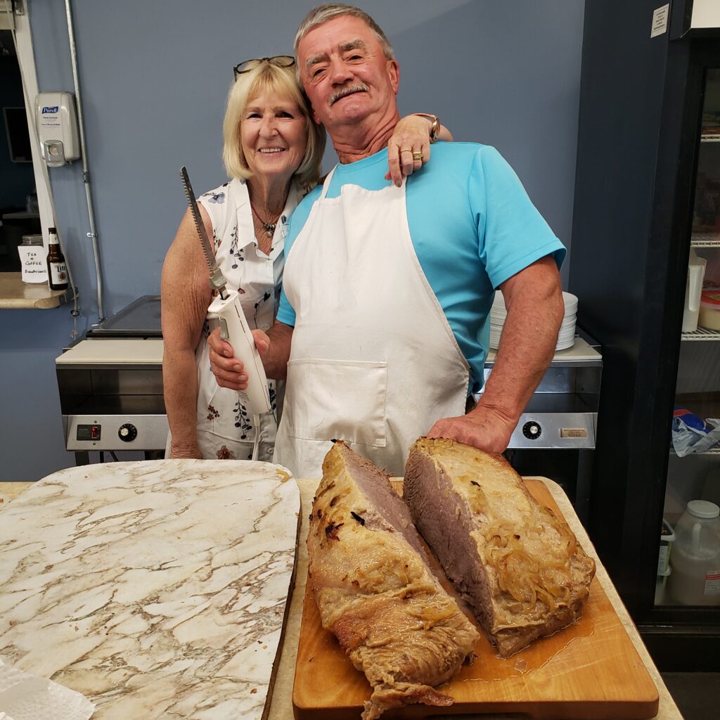We had extra help in the kitchen slicing meat (thank you Wayne and Judy) to keep up with the crowd. Extra helpers pitched in. The dessert table always needed re-stocking as did the ice water. Thank you Jean, John and Scott.