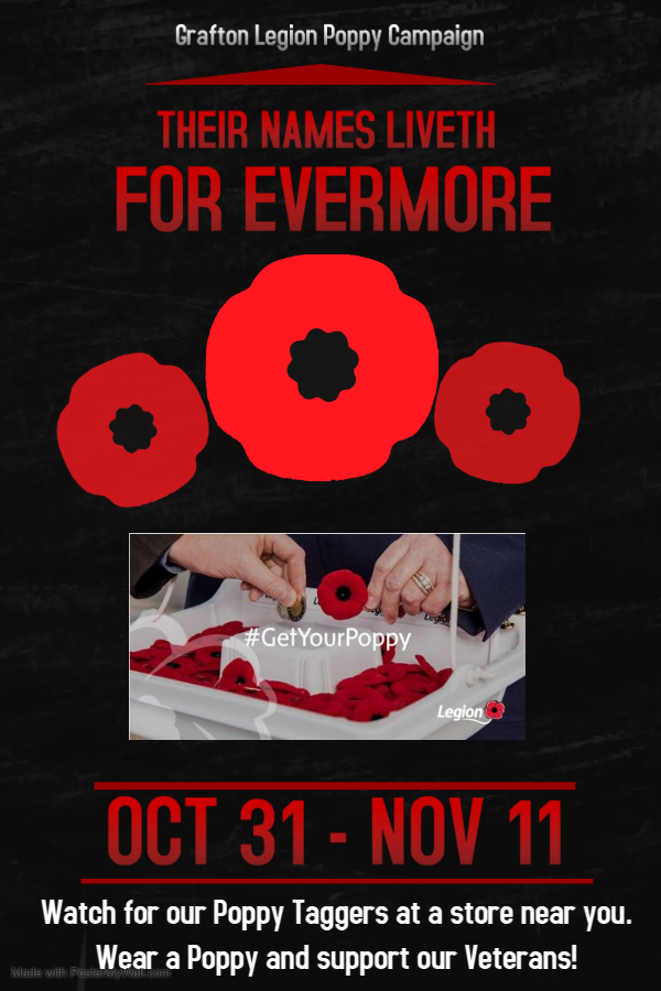 — The 2025 Poppy Campaign will be from Friday October 31 and until Tuesday November 11.