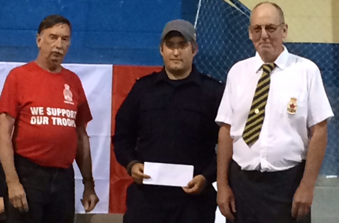$13,500 cheque presented to Firefighter Nick Halmasy from Branch 580 President Doug Moore and Branch 580 Treasurer Dave Harnden